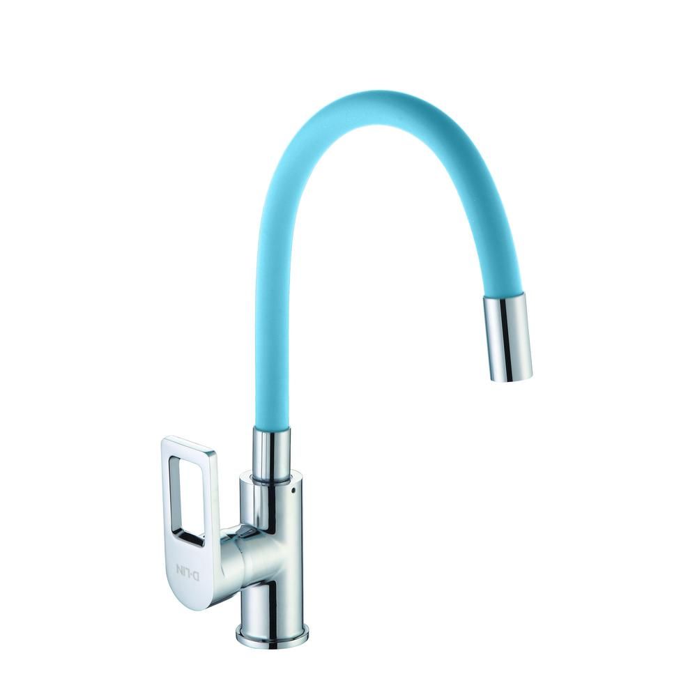 Смеситель для кухни с гибким изливом D-Lin D155308-6, хром/синий. Управление: рычажное. Материал: латунь. Монтаж: на мойку.
