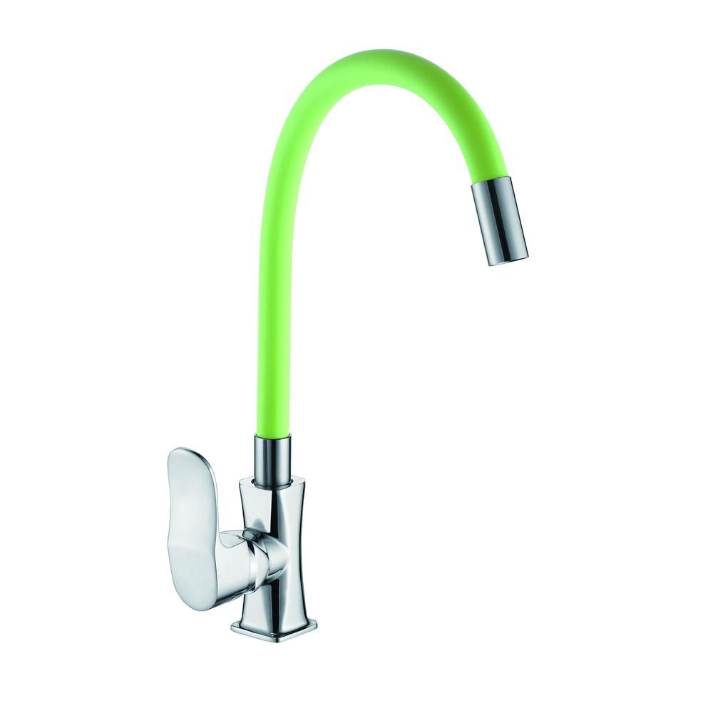 Смеситель для кухни с гибким изливом D-Lin D155318-5, хром/зеленый. Управление: рычажное. Материал: латунь. Монтаж: на мойку.