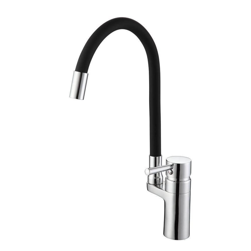 Смеситель для кухни с гибким изливом D-Lin D157315-1, хром/черный. Управление: рычажное. Материал: латунь. Монтаж: на мойку.