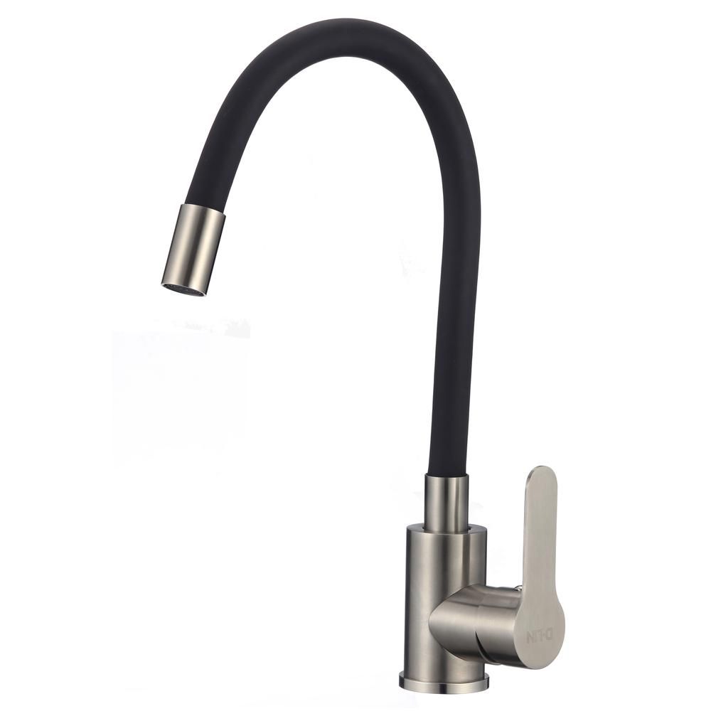Смеситель для кухни с гибким изливом D-Lin H155316-1, сатин/черный. Управление: рычажное. Материал: нержавеющая сталь. Монтаж: на мойку.