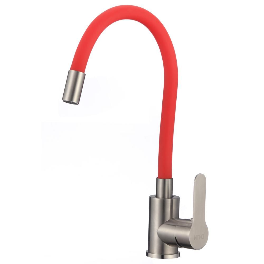 Смеситель для кухни с гибким изливом D-Lin H155316-4, сатин/красный. Управление: рычажное. Материал: нержавеющая сталь. Монтаж: на мойку.