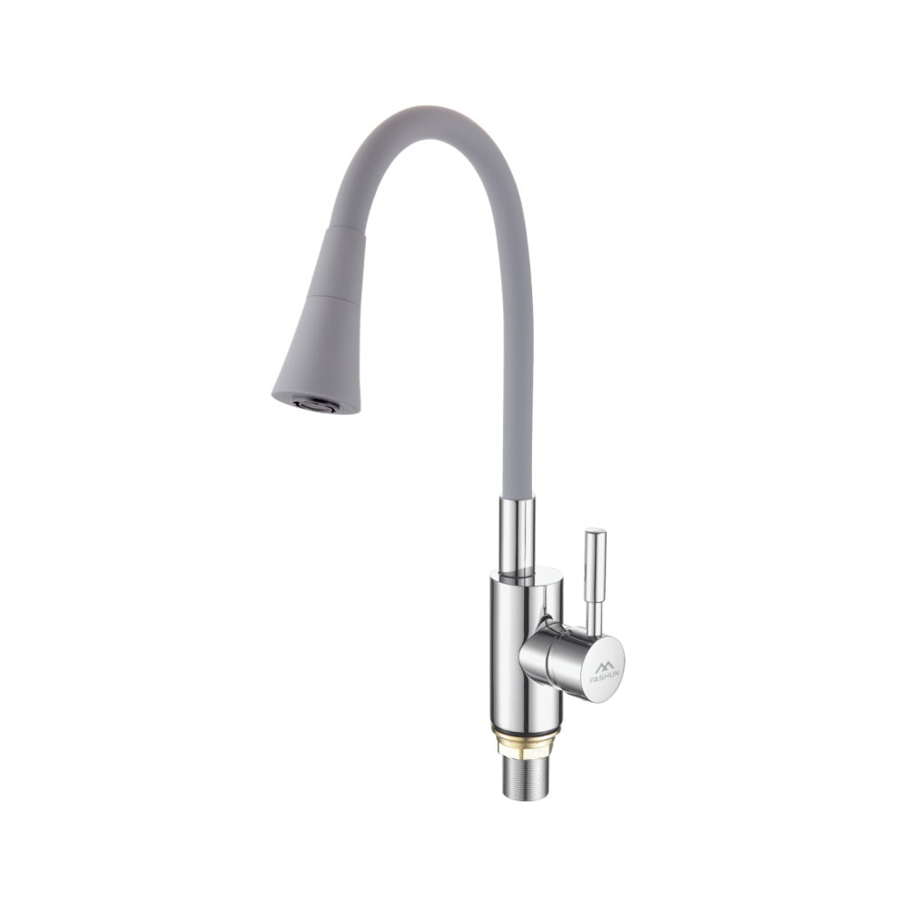 Смеситель для кухни с гибким изливом FASHUN A4053+B17, хром/серый. Управление: рычажное. Вращение излива: да. Выдвижной излив: нет. Гибкий излив: да. Высота: 40,1 см.