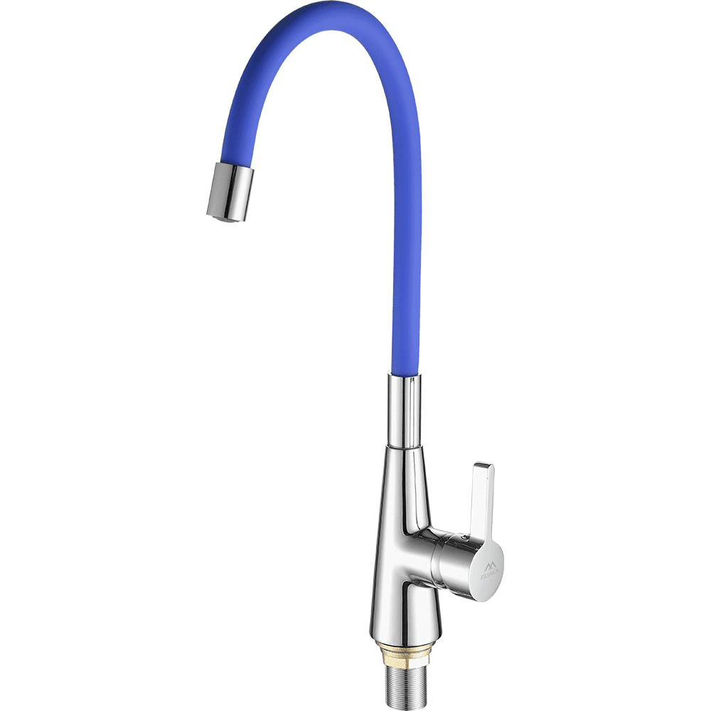 Смеситель для кухни с гибким изливом FASHUN A4153+B01, хром/синий. Управление: рычажное. Вращение излива: да. Выдвижной излив: нет. Гибкий излив: да. Высота: 44,6 см.