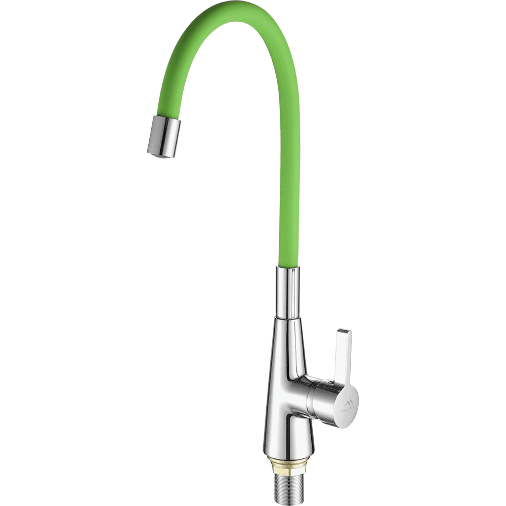 Смеситель для кухни с гибким изливом FASHUN A4153+B05, хром/зеленый. Управление: рычажное. Вращение излива: да. Выдвижной излив: нет. Гибкий излив: да. Высота: 44,6 см.