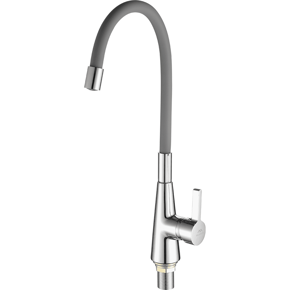 Смеситель для кухни с гибким изливом FASHUN A4153+B07, хром/серый. Управление: рычажное. Вращение излива: да. Выдвижной излив: нет. Гибкий излив: да. Высота: 44,6 см.