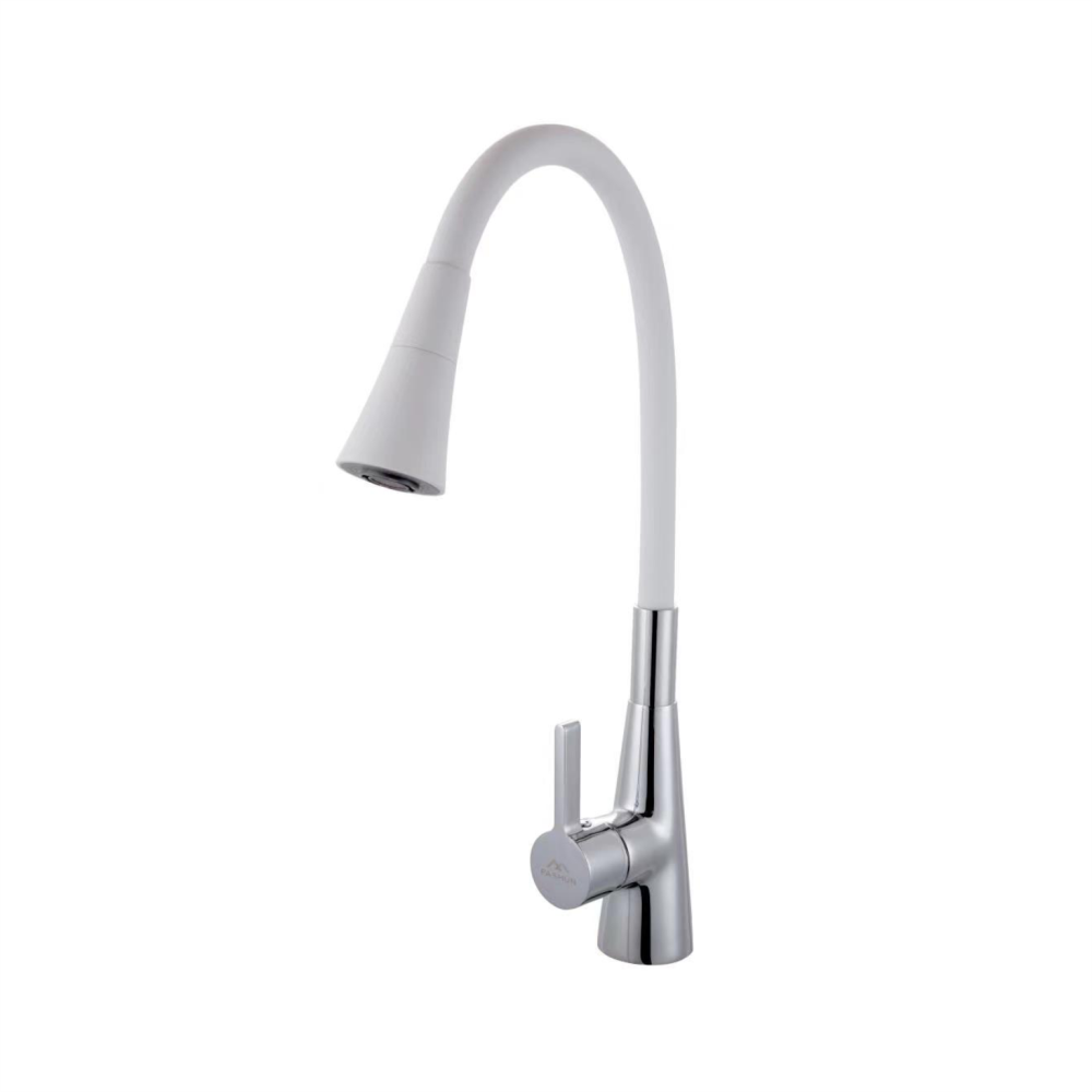 Смеситель для кухни с гибким изливом FASHUN A4153+B13, хром/белый. Управление: рычажное. Вращение излива: да. Выдвижной излив: нет. Гибкий излив: да. Высота: 44,5 см.
