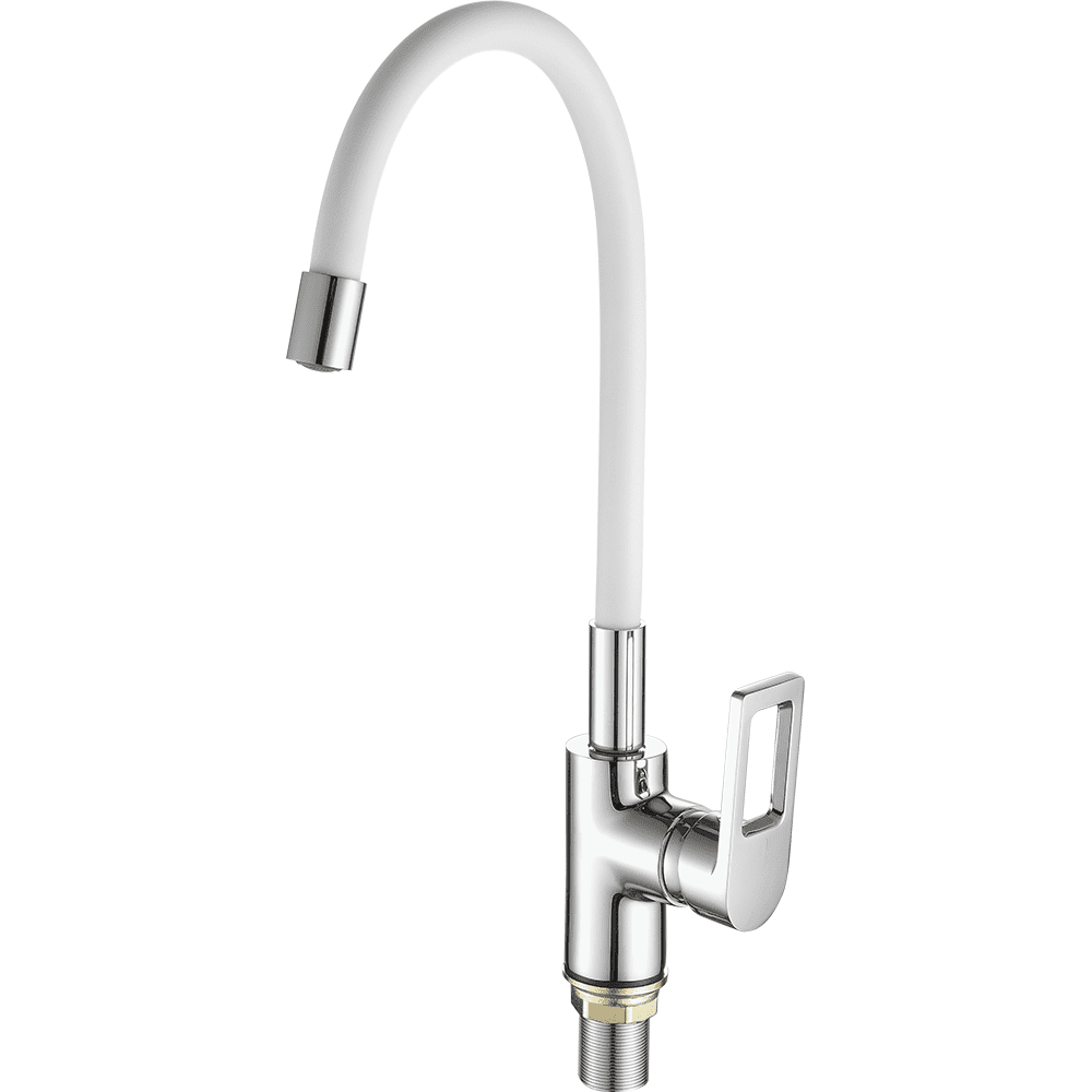 Смеситель для кухни с гибким изливом FASHUN A4253+B03, хром/белый. Управление: рычажное. Вращение излива: да. Выдвижной излив: нет. Гибкий излив: да. Высота: 40 см.