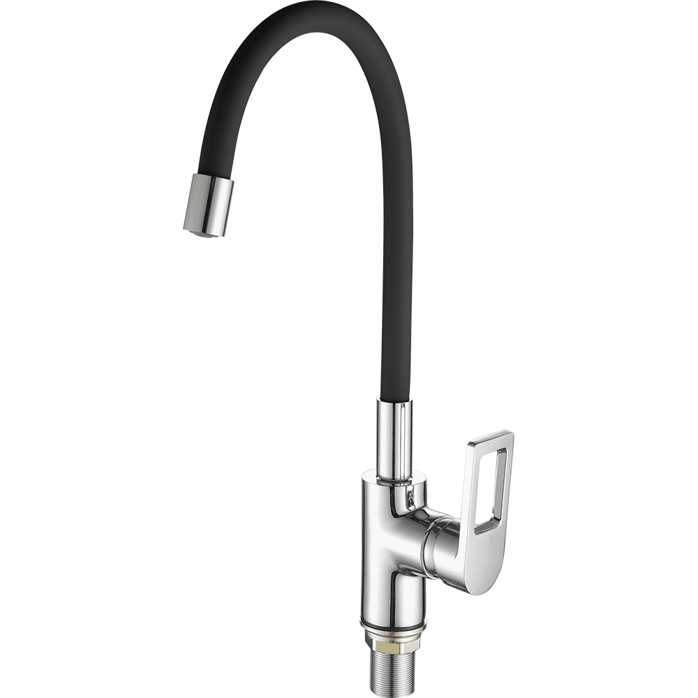 Смеситель для кухни с гибким изливом FASHUN A4253+B04, хром/черный. Управление: рычажное. Вращение излива: да. Выдвижной излив: нет. Гибкий излив: да. Высота: 40 см.