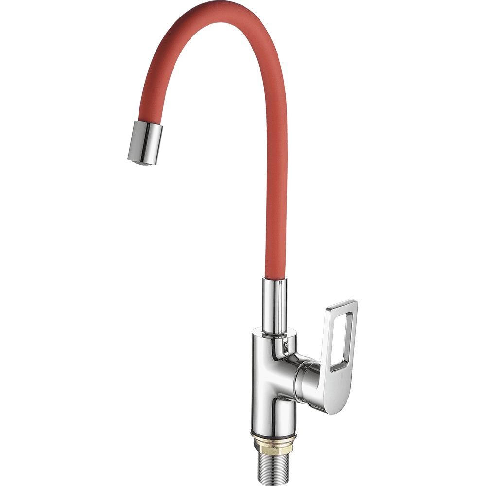 Смеситель для кухни с гибким изливом FASHUN A4253+B06, хром/красный. Управление: рычажное. Вращение излива: да. Выдвижной излив: нет. Гибкий излив: да. Высота: 40 см.