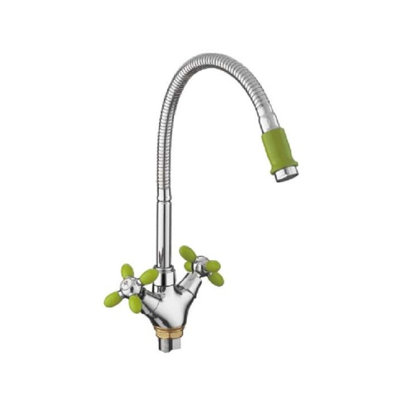 Смеситель для кухни с гибким изливом FASHUN A43127-6, хром/зеленый. Управление: вентильное. Вращение излива: да. Выдвижной излив: нет. Гибкий излив: да. Высота: 40 см.