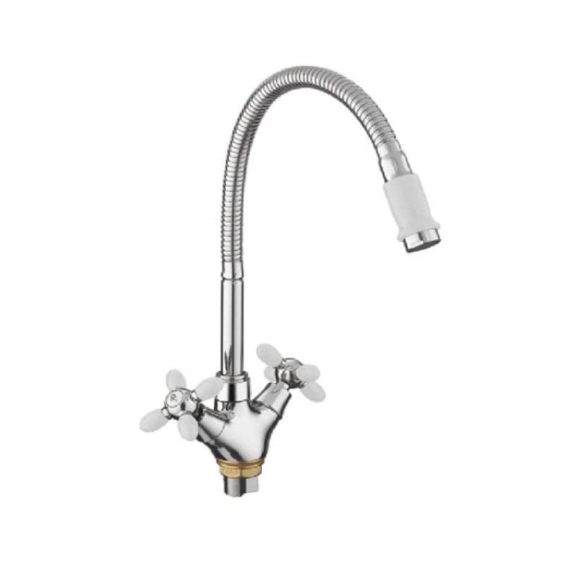 Смеситель для кухни с гибким изливом FASHUN A43127-8, хром/белый. Управление: вентильное. Вращение излива: да. Выдвижной излив: нет. Гибкий излив: да. Высота: 40 см.
