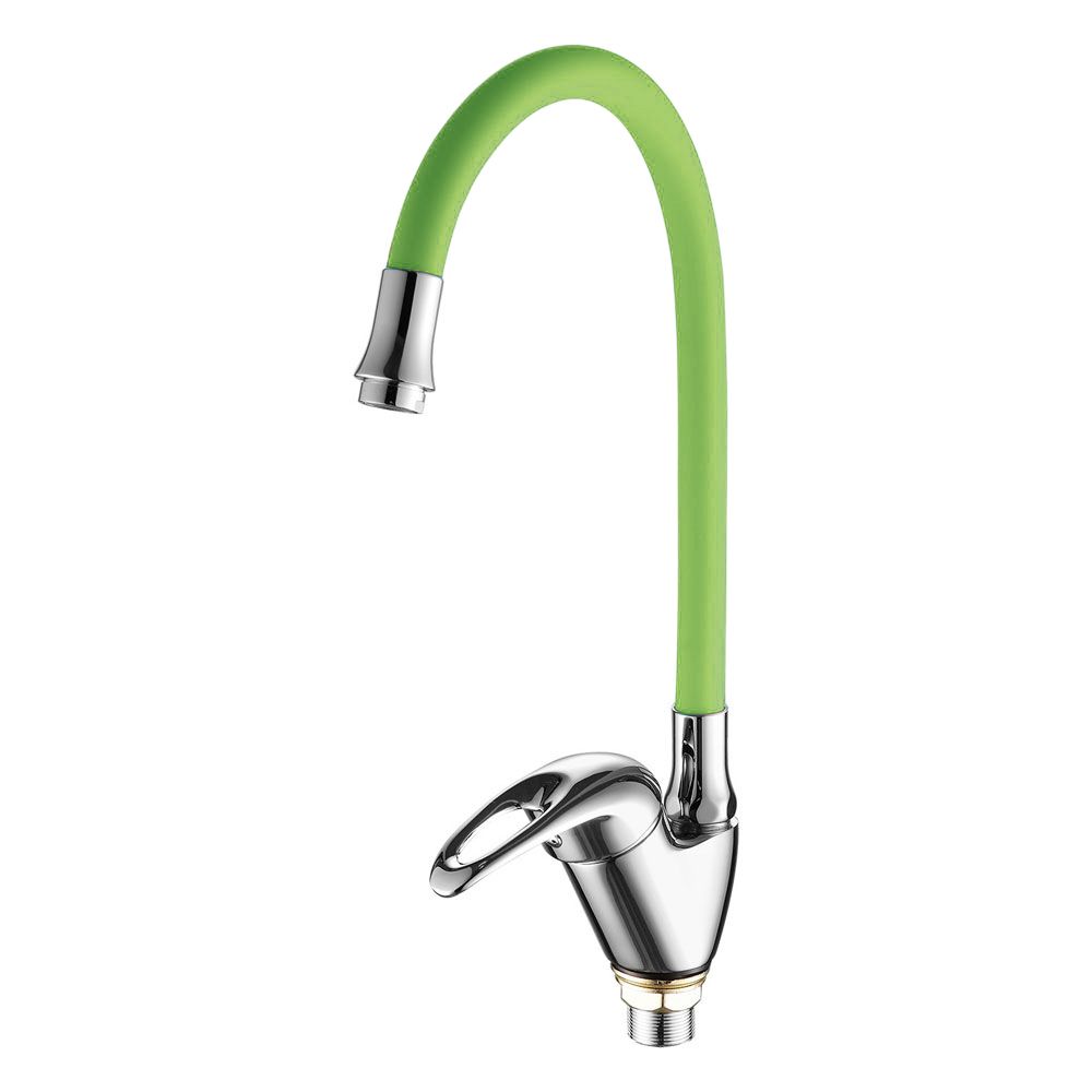 Смеситель для кухни с гибким изливом FASHUN A4403+A7251, хром/зеленый. Управление: рычажное. Вращение излива: да. Выдвижной излив: нет. Гибкий излив: да. Высота: 35,1 см.