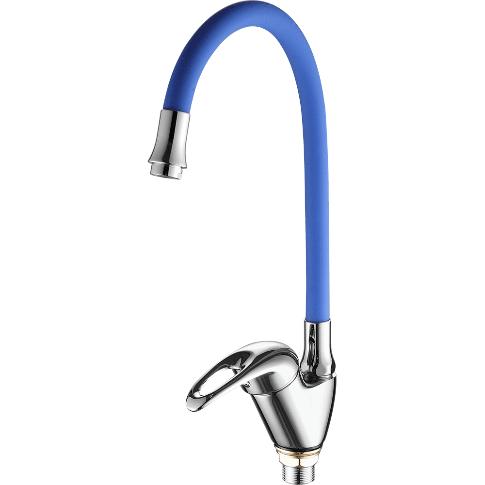 Смеситель для кухни с гибким изливом FASHUN A4403+A7253, хром/синий. Управление: рычажное. Вращение излива: да. Выдвижной излив: нет. Гибкий излив: да. Высота: 35,1 см.