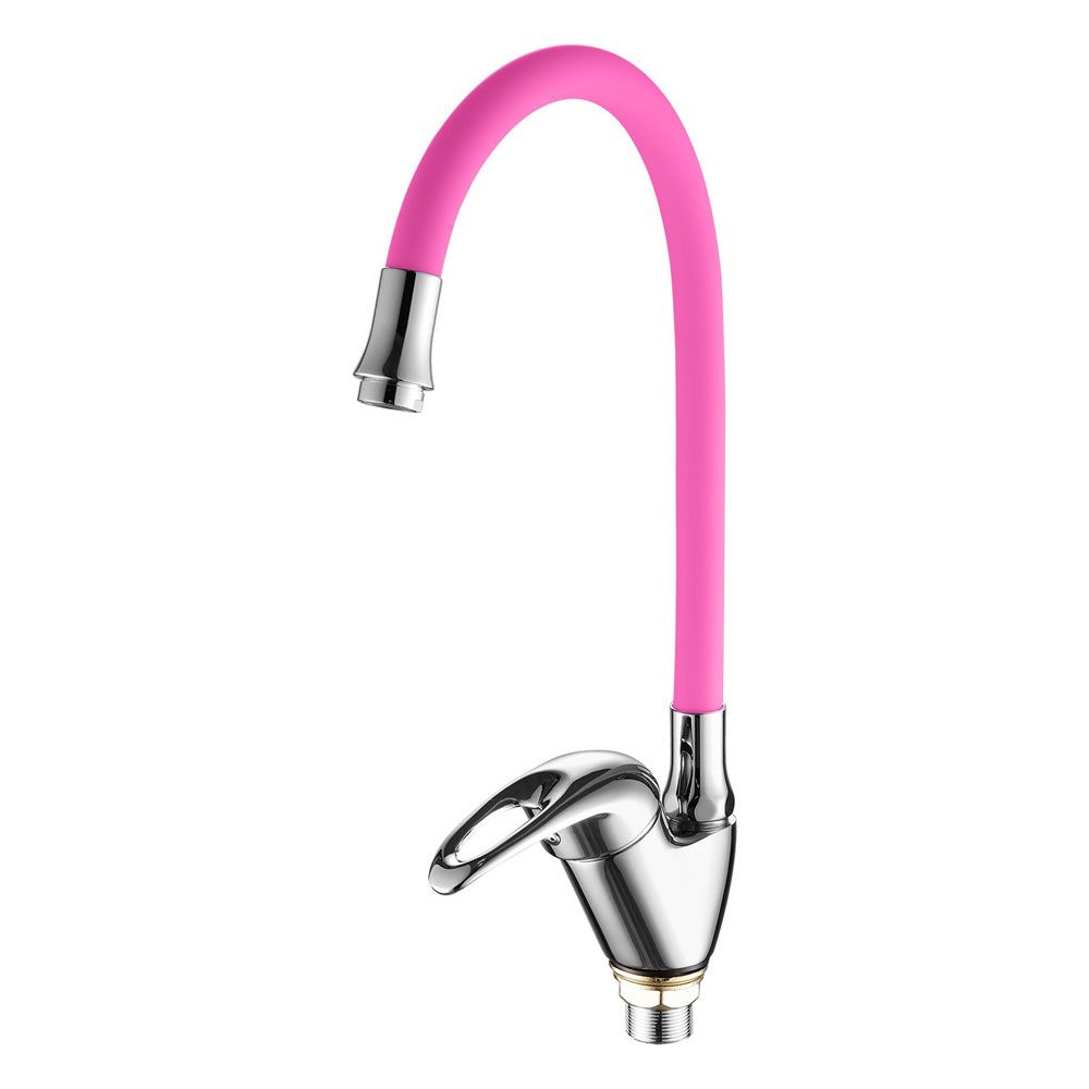 Смеситель для кухни с гибким изливом FASHUN A4403+A7255, хром/розовый. Управление: рычажное. Вращение излива: да. Выдвижной излив: нет. Гибкий излив: да. Высота: 35,1 см.