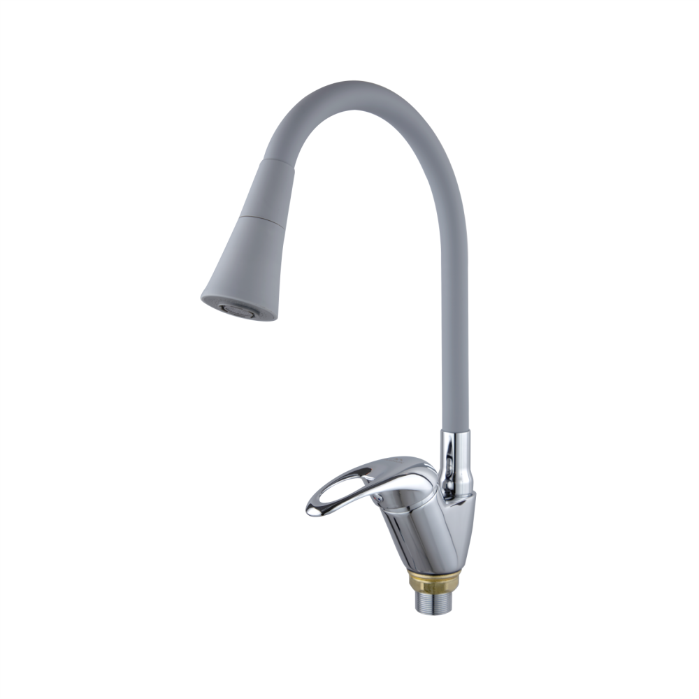Смеситель для кухни с гибким изливом FASHUN A4403+A7357, хром/серый. Управление: рычажное. Вращение излива: да. Выдвижной излив: нет. Гибкий излив: да. Высота: 35,1 см.