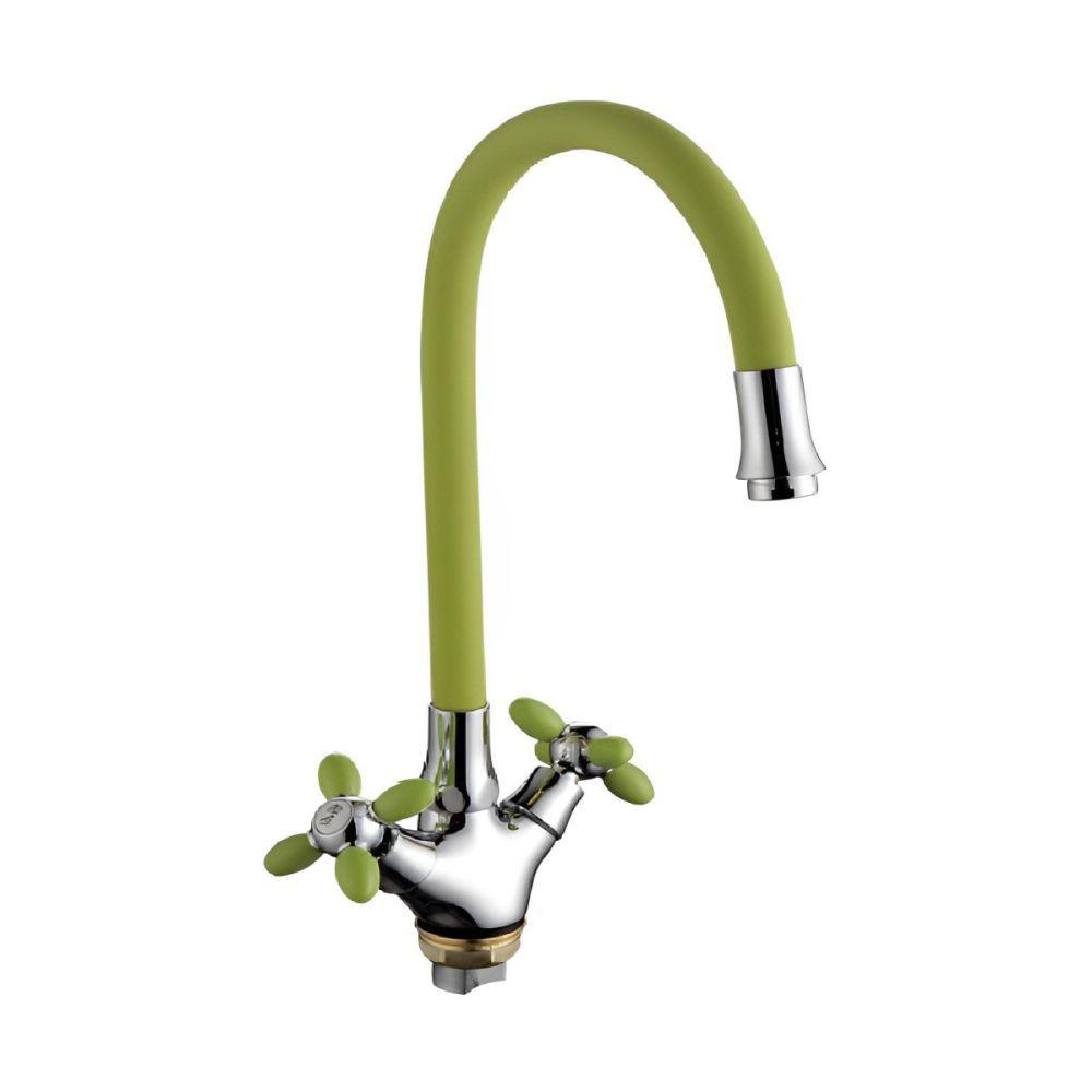 Смеситель для кухни с гибким изливом FASHUN A44127-6, хром/зеленый. Управление: вентильное. Вращение излива: да. Выдвижной излив: нет. Гибкий излив: да. Высота: 35,8 см.