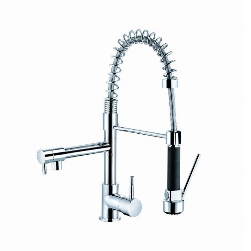 Смеситель для кухни с гибким изливом FASHUN A4452, хром. Управление: рычажное. Вращение излива: да. Выдвижной излив: нет. Гибкий излив: да. Высота: 53,5 см.