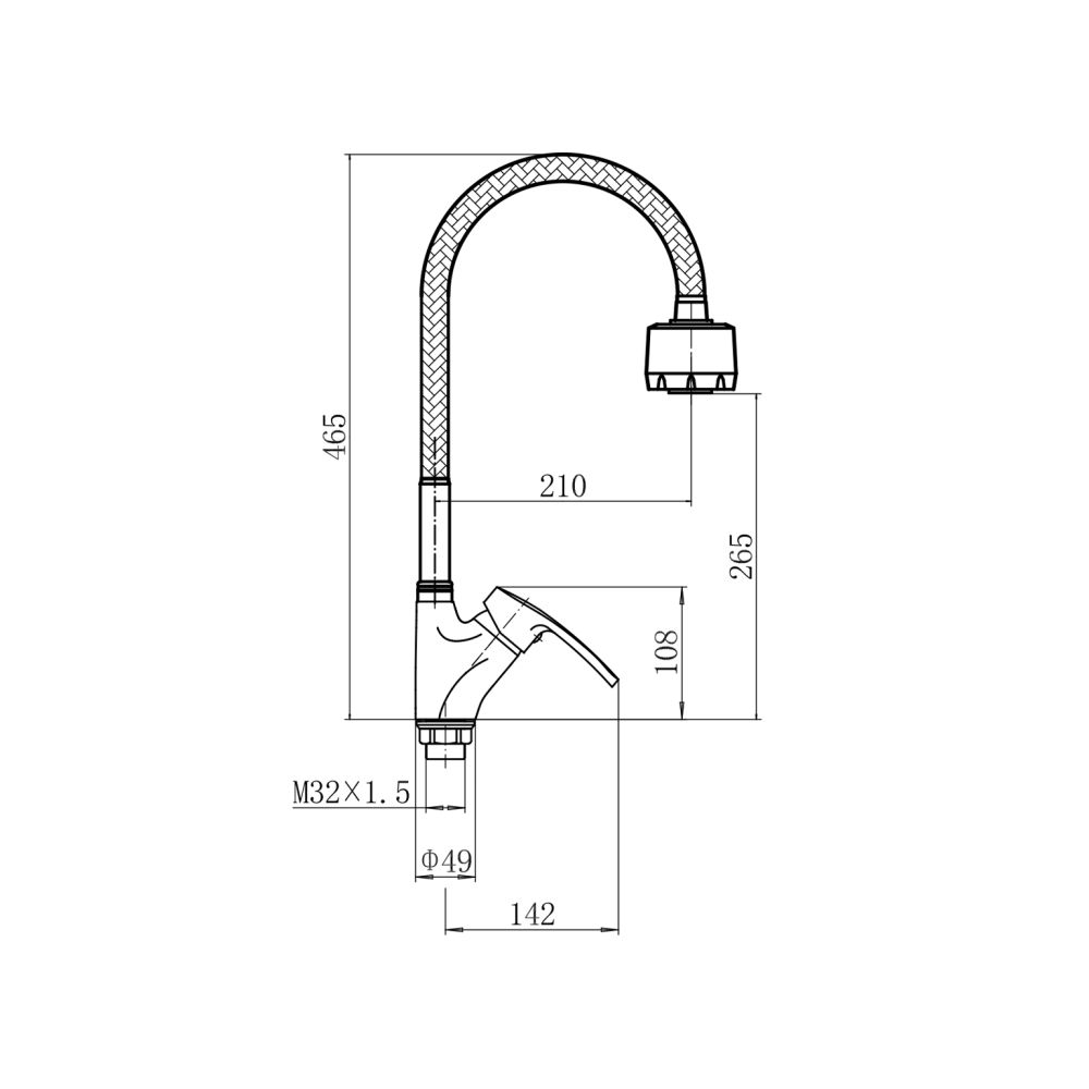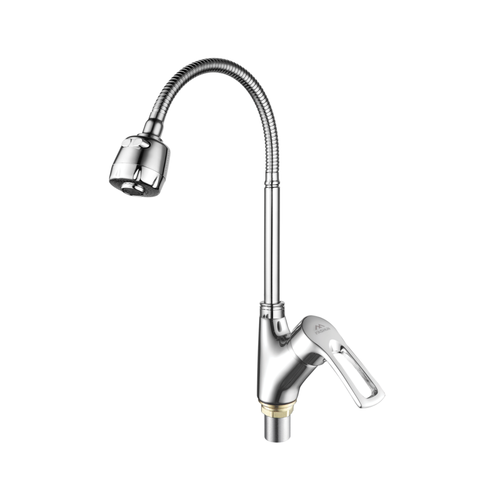 Смеситель для кухни с гибким изливом FASHUN A4466+A7310, хром. Управление: рычажное. Вращение излива: да. Выдвижной излив: нет. Гибкий излив: да. Высота: 46,5 см.