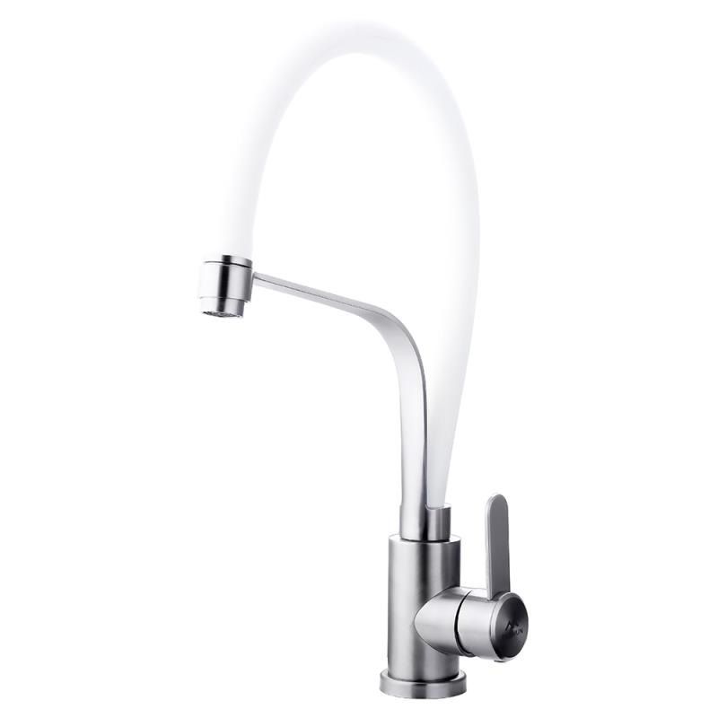 Смеситель для кухни с гибким изливом FASHUN A54012-8, сатин/белый. Управление: рычажное. Вращение излива: да. Выдвижной излив: нет. Гибкий излив: да. Высота: 40,5 см.