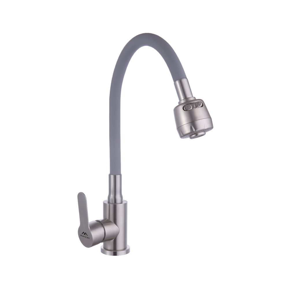Смеситель для кухни с гибким изливом FASHUN A54101+N7347, сатин/серый. Управление: рычажное. Вращение излива: да. Выдвижной излив: нет. Гибкий излив: да. Высота: 32,8 см.