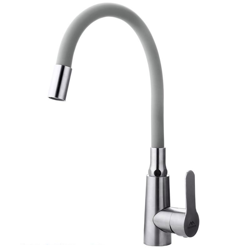 Смеситель для кухни с гибким изливом FASHUN A54301-12, сатин/серый. Управление: рычажное. Вращение излива: да. Выдвижной излив: нет. Гибкий излив: да. Высота: 34,5 см.