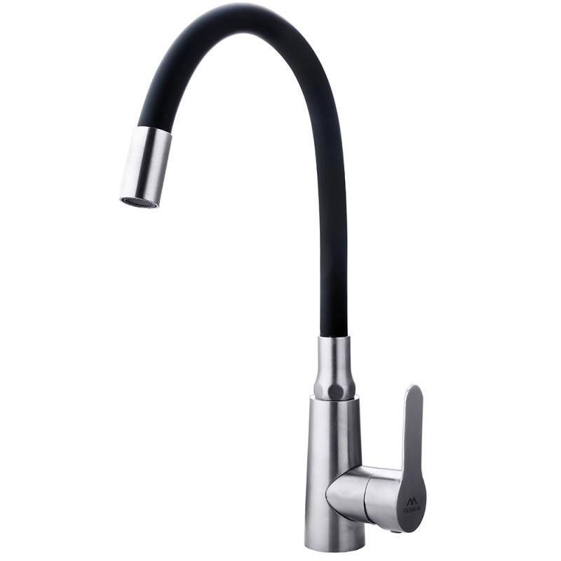 Смеситель для кухни с гибким изливом FASHUN A54301-7, сатин/черный. Управление: рычажное. Вращение излива: да. Выдвижной излив: нет. Гибкий излив: да. Высота: 34,5 см.