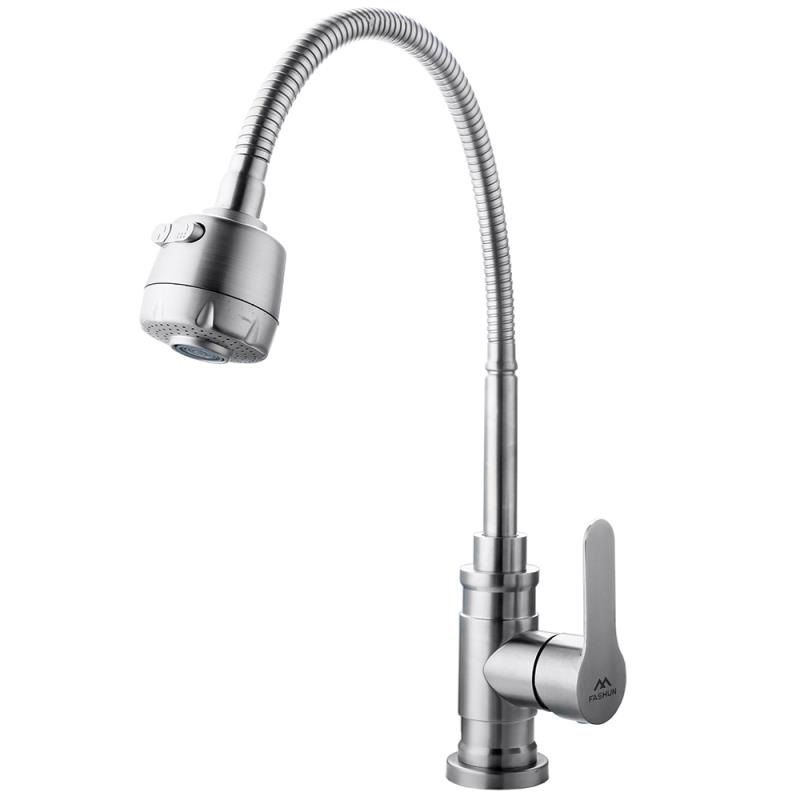 Смеситель для кухни с гибким изливом FASHUN A54401-3, сатин. Управление: рычажное. Вращение излива: да. Выдвижной излив: нет. Гибкий излив: да. Высота: 35 см.