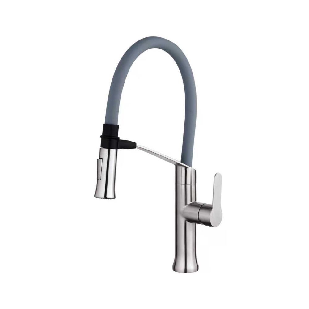 Смеситель для кухни с гибким изливом FASHUN A54501-12, сатин/серый. Управление: рычажное. Вращение излива: да. Выдвижной излив: нет. Гибкий излив: да. Высота: 46,2 см.
