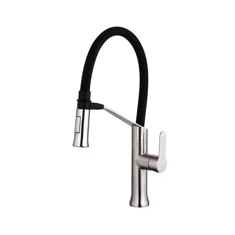 Смеситель для кухни с гибким изливом FASHUN A54501-7, сатин/черный. Управление: рычажное. Вращение излива: да. Выдвижной излив: нет. Гибкий излив: да. Высота: 46,2 см.