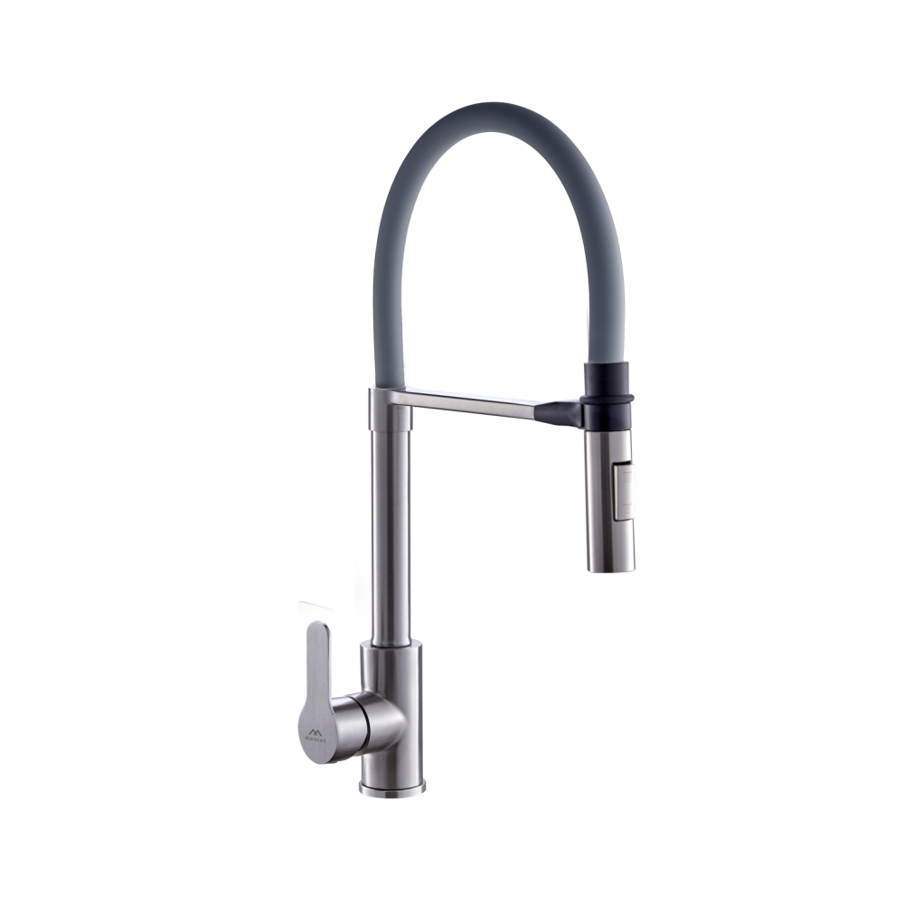 Смеситель для кухни с гибким изливом FASHUN A54511-12, сатин/серый. Управление: рычажное. Вращение излива: да. Выдвижной излив: нет. Гибкий излив: да. Высота: 50,6 см.