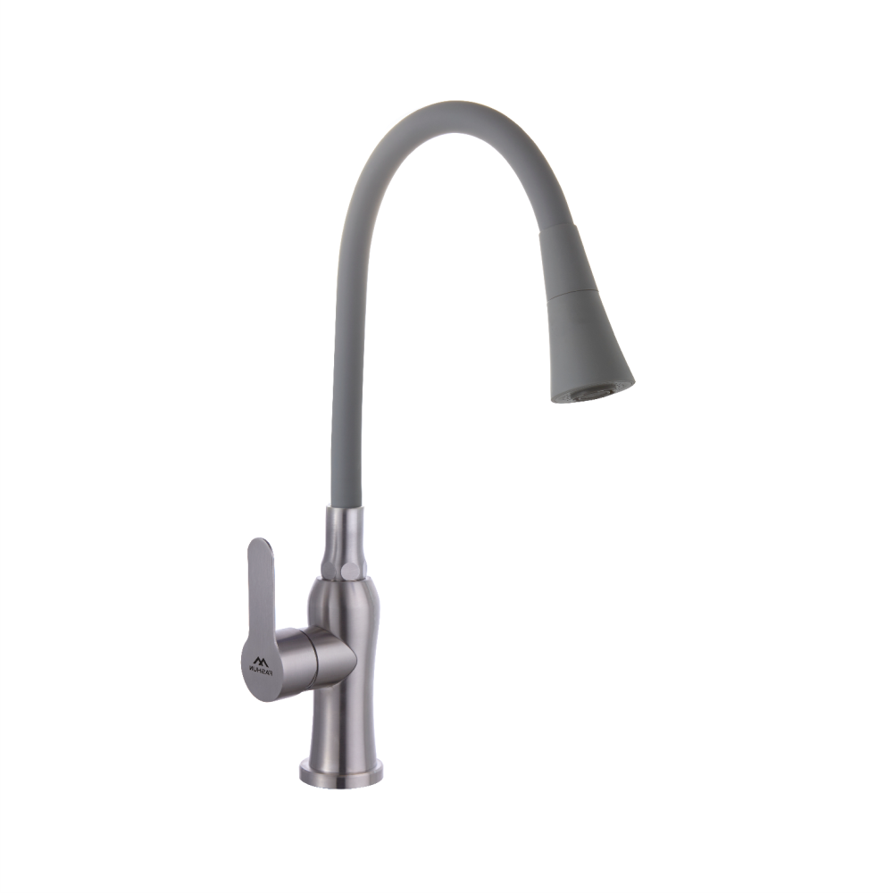 Смеситель для кухни с гибким изливом FASHUN A54801+N7357, сатин/серый. Управление: рычажное. Вращение излива: да. Выдвижной излив: нет. Гибкий излив: да. Высота: 42,5 см.