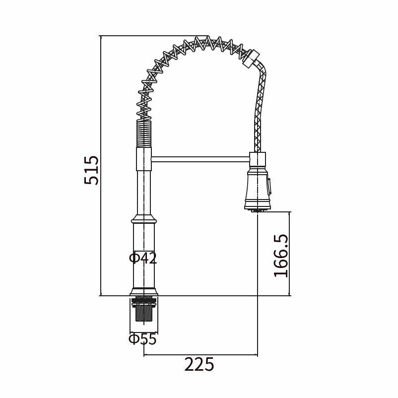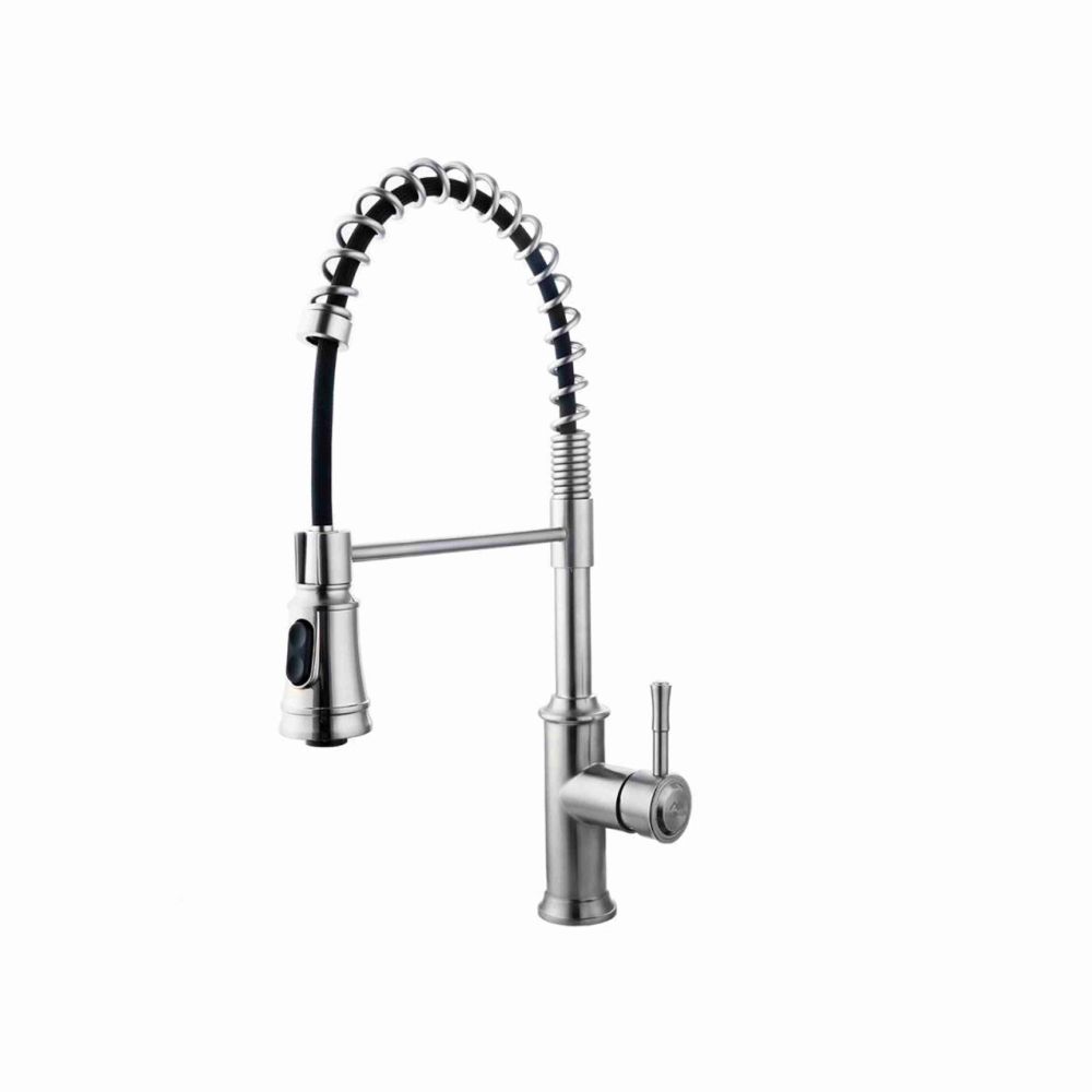 Смеситель для кухни с гибким изливом FASHUN A56008, сатин. Управление: рычажное. Вращение излива: да. Выдвижной излив: нет. Гибкий излив: да. Высота: 51,5 см.