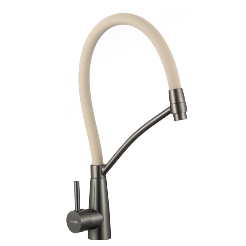 Смеситель для кухни с гибким изливом Fmark FS8255Q-12, графит. Гарантийный срок: 5 лет. Поверхность: матовая. Материал: нержавеющая сталь. Монтаж: на мойку, на столешницу.