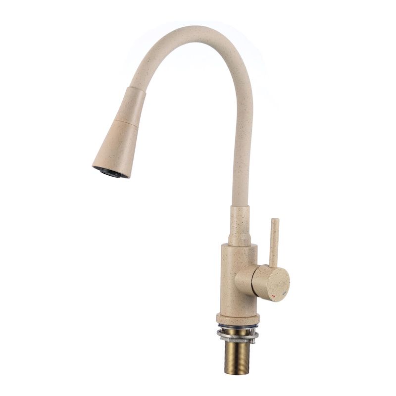 Смеситель Savol S-3002SM-S — это практичное и современное решение для кухни, выполненное в уникальном цветовом исполнении: корпус и гибкий излив окрашены в песочный цвет с крапинками, что придаёт изделию натуральный, «тёплый» внешний вид. Такое оформление — это новый подход к созданию цветовой палитры в сантехническом дизайне, сочетающий в себе эстетику, практичность и универсальность для любых интерьеров.