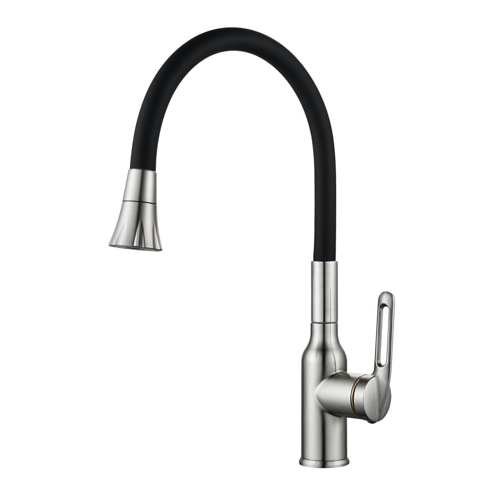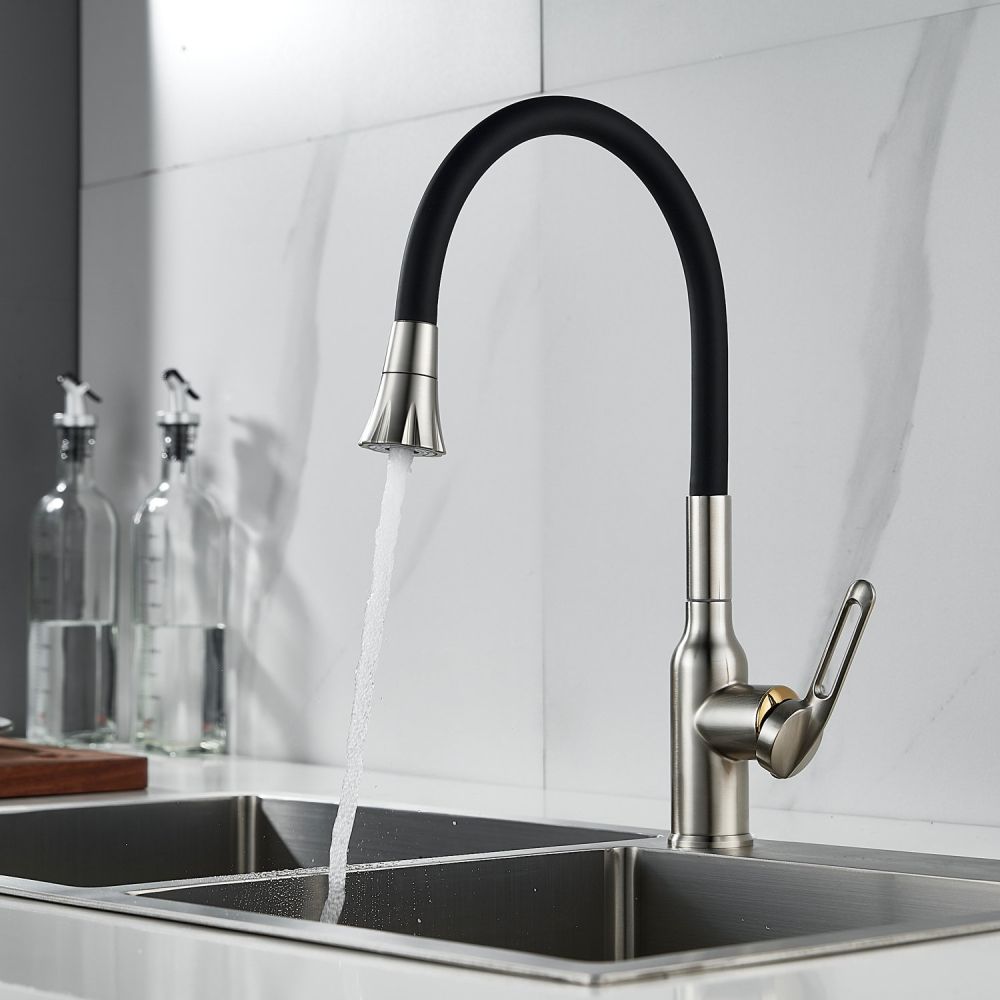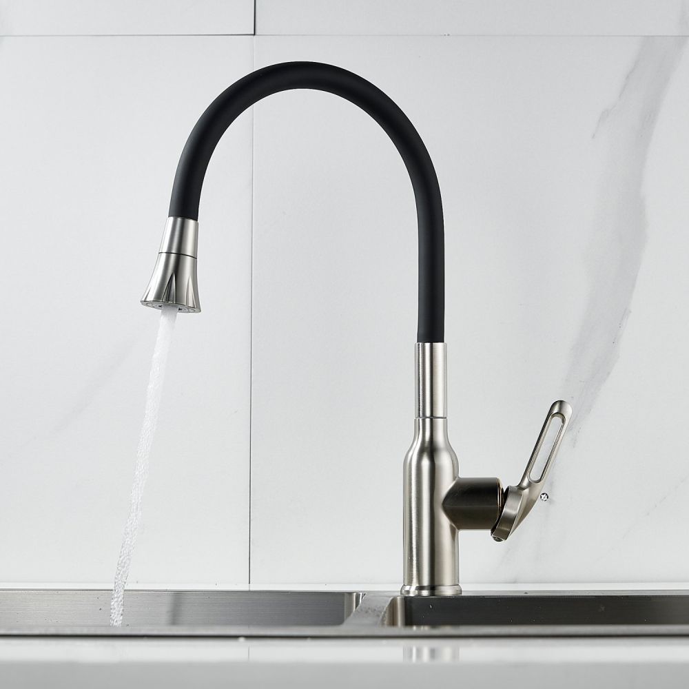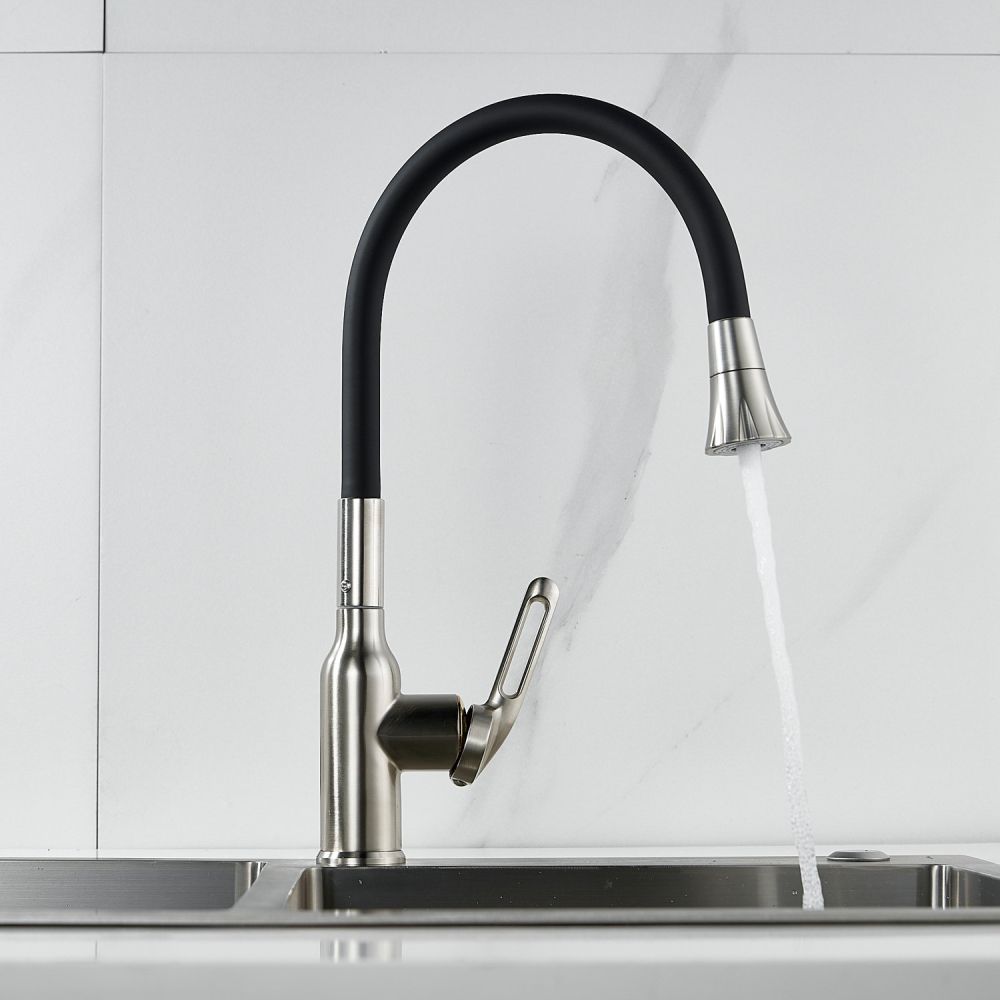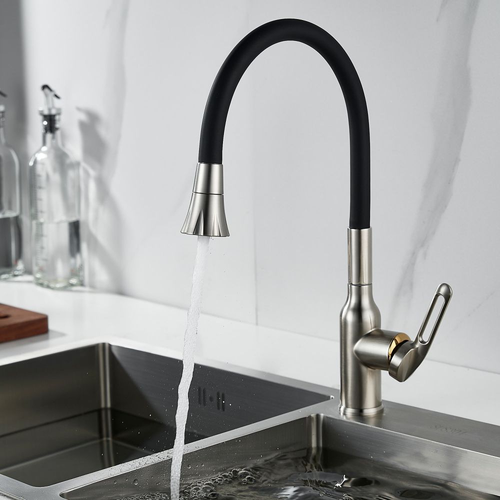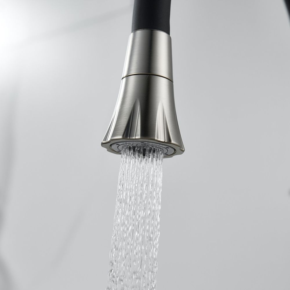 Одной из ключевых особенностей этого смесителя является его высокий поворотный излив, который обеспечивает удобство при наполнении больших кастрюль или ваз водой. Благодаря гибкому силиконовому изливу с двумя режимами работы (стандартный и “душ”), вы можете легко переключаться между струей и душем для мытья посуды или продуктов.