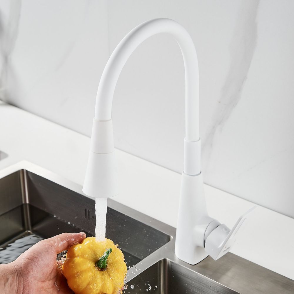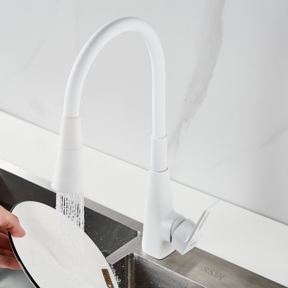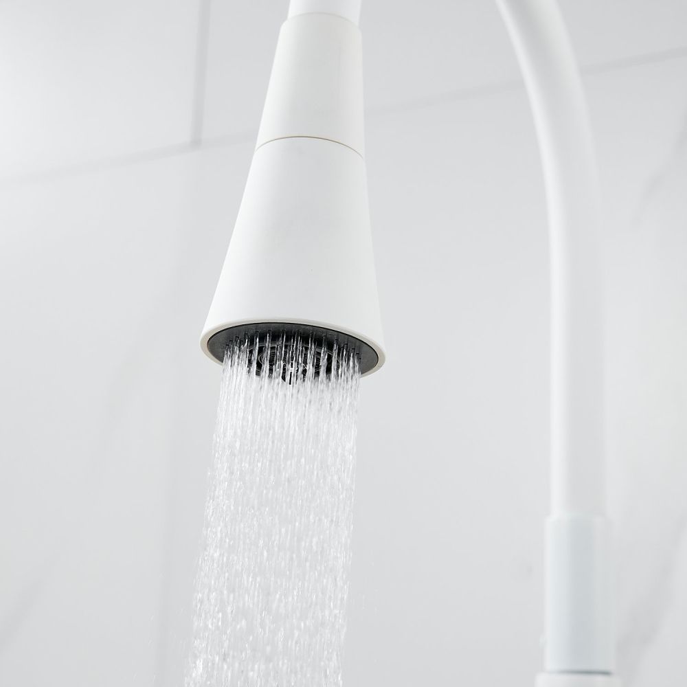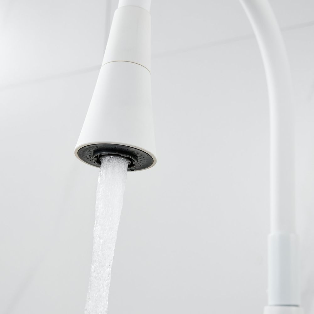 Одной из ключевых особенностей этого смесителя является его высокий поворотный излив, который обеспечивает удобство при наполнении больших кастрюль или ваз водой. Благодаря гибкому силиконовому изливу с двумя режимами работы (стандартный и “душ”), вы можете легко переключаться между струей и душем для мытья посуды или продуктов.