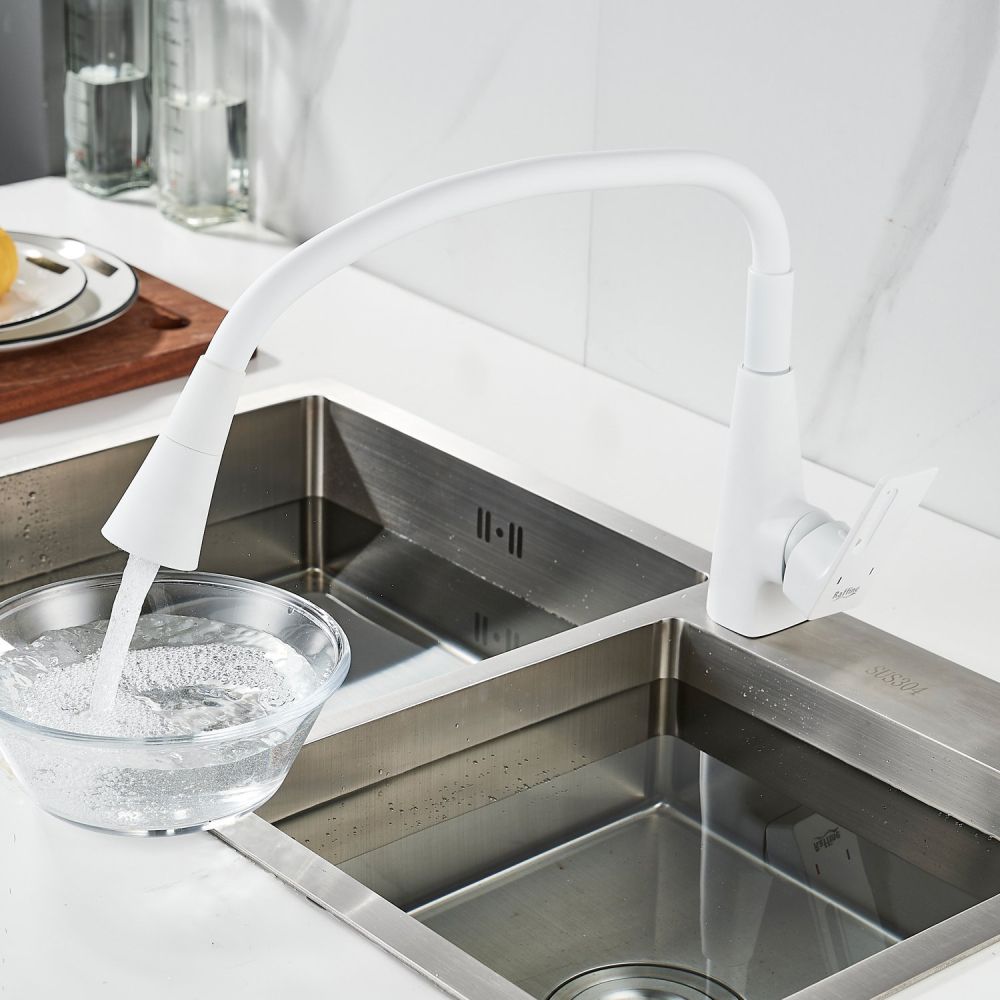 Смеситель для кухни Raffine F313C-1 - идеальный выбор для вашей кухонной мойки! Изготовлен из нержавеющей стали, обеспечивающей прочность и долговечность.