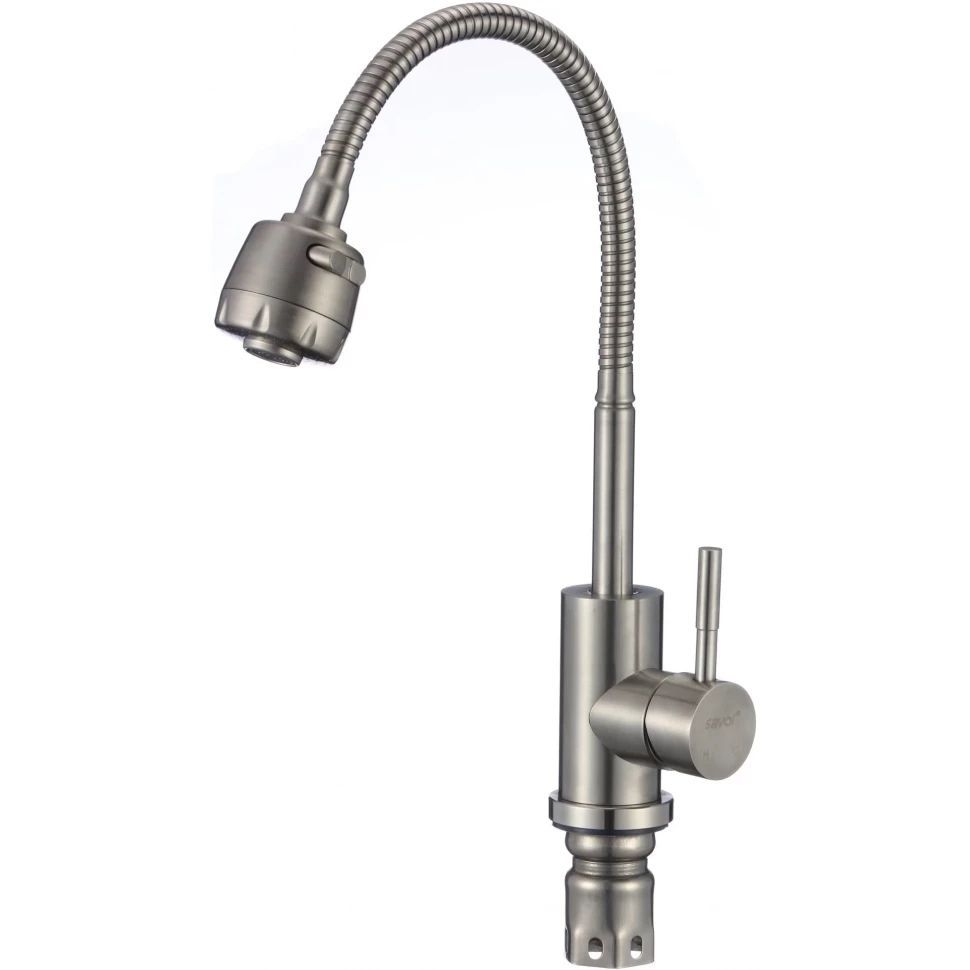 Смеситель для кухни с гибким изливом Savol S-SUS3002-1, сатин. Гарантийный срок: 5 лет. Поверхность: Матовая. Материал: нержавеющая сталь. Монтаж: на мойку, на столешницу.