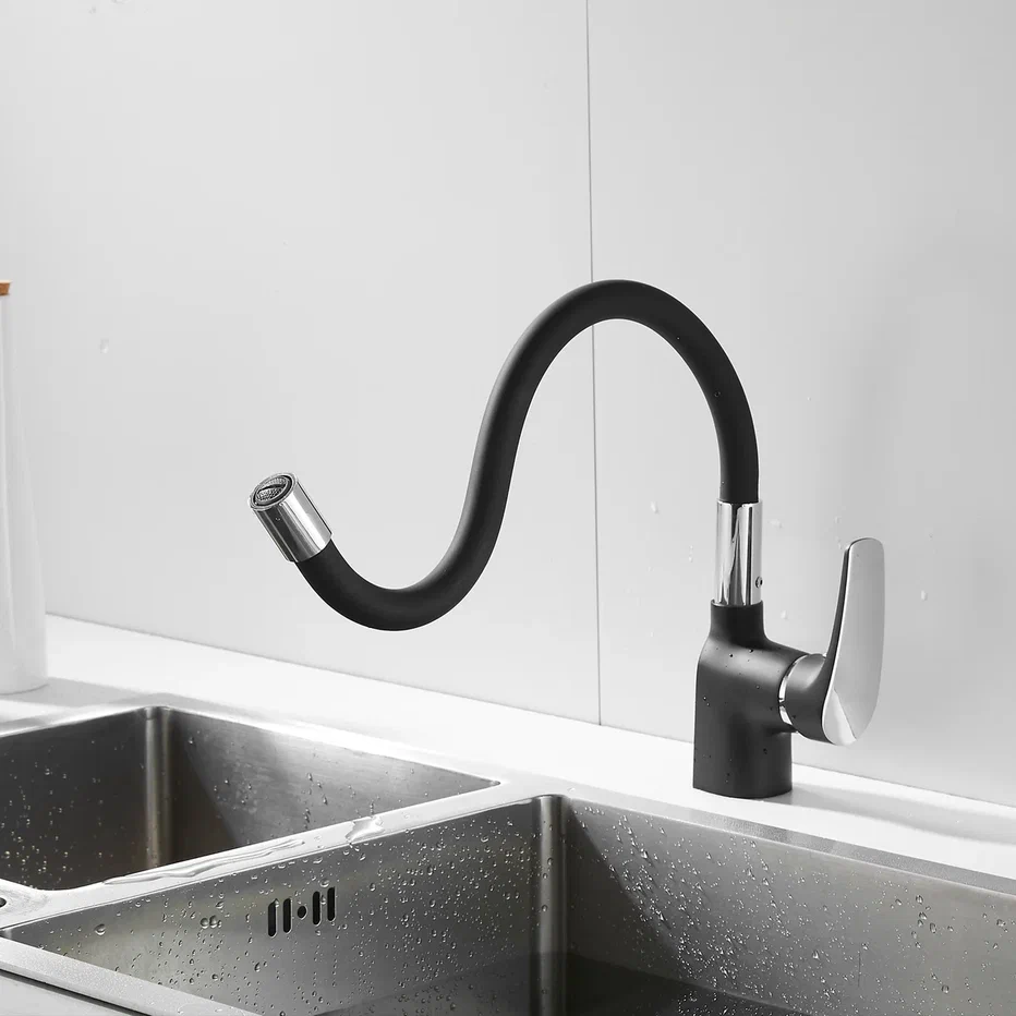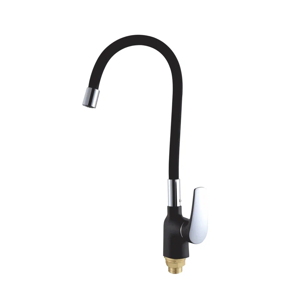 Смеситель для кухни с гибким изливом Shevanik S443-3, черный. Управление: рычажное. Вращение излива: да. Выдвижной излив: нет. Гибкий излив: да. Высота:36,5.