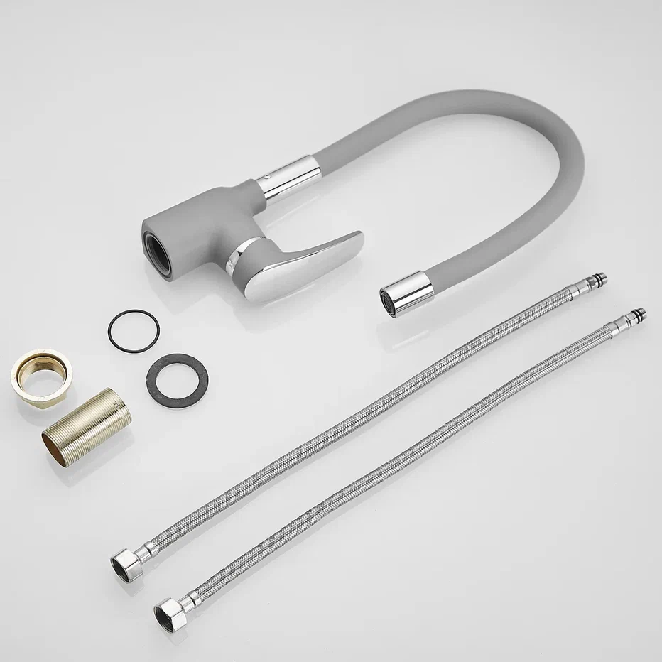 Смеситель для кухни с гибким изливом Shevanik S443-9, серый. Управление: рычажное. Вращение излива: да. Выдвижной излив: нет. Гибкий излив: да. Высота:36,5.