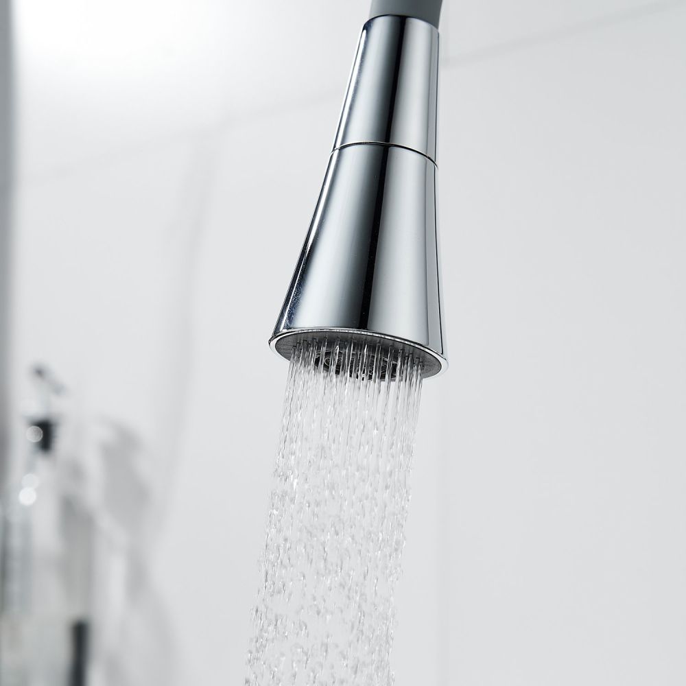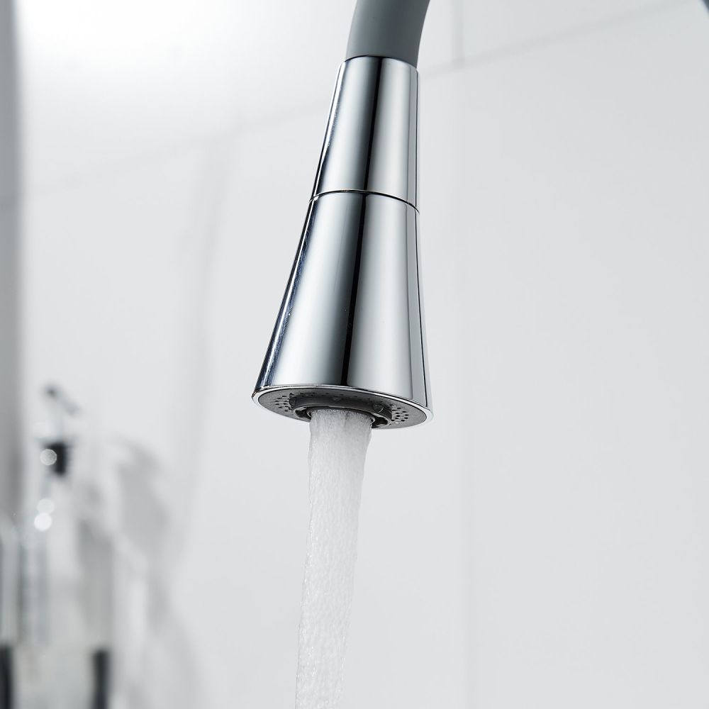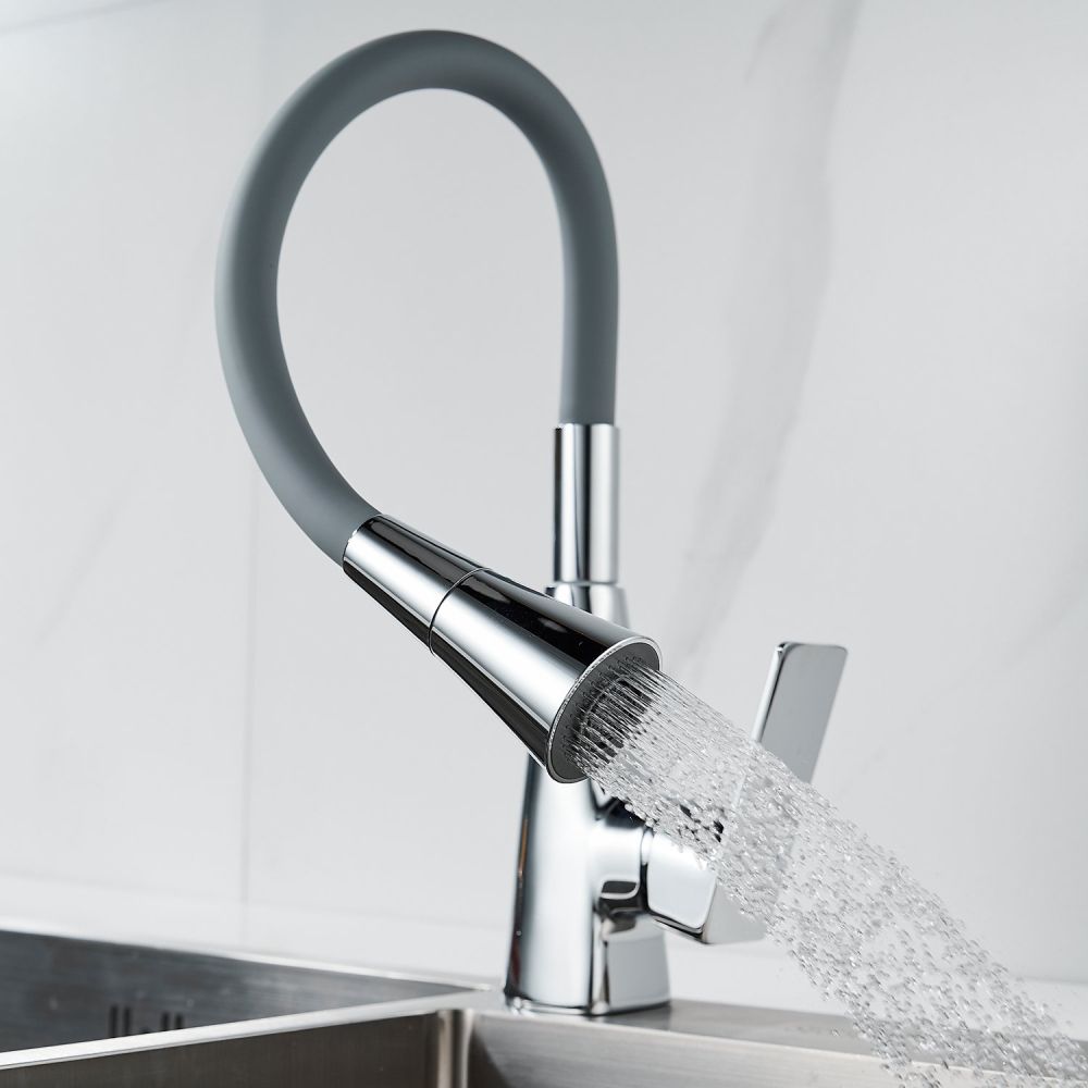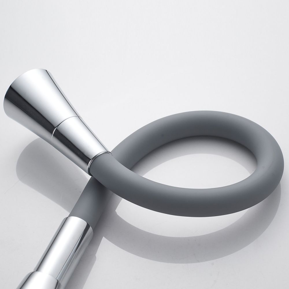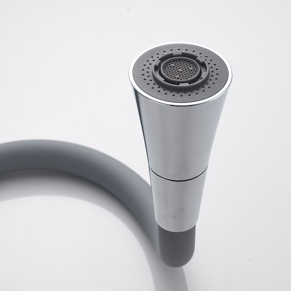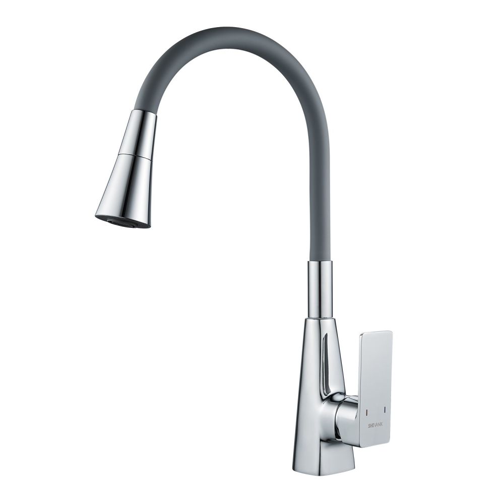Смеситель для кухни с гибким изливом Shevanik S543-9, хром/серый. Управление: рычажное. Вращение излива: да. Выдвижной излив: нет. Гибкий излив: да. Высота:37,5.