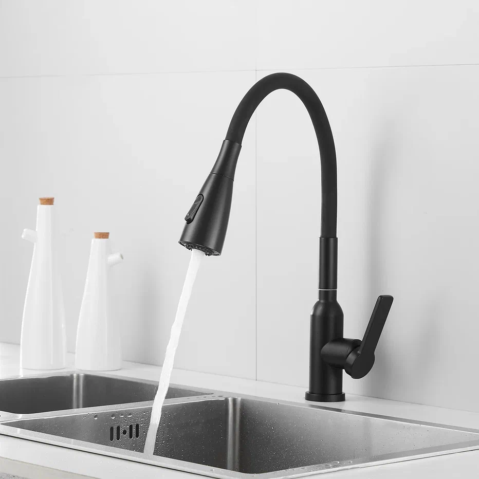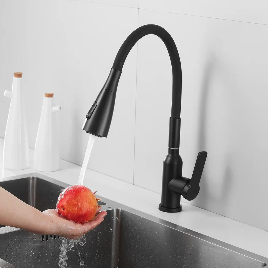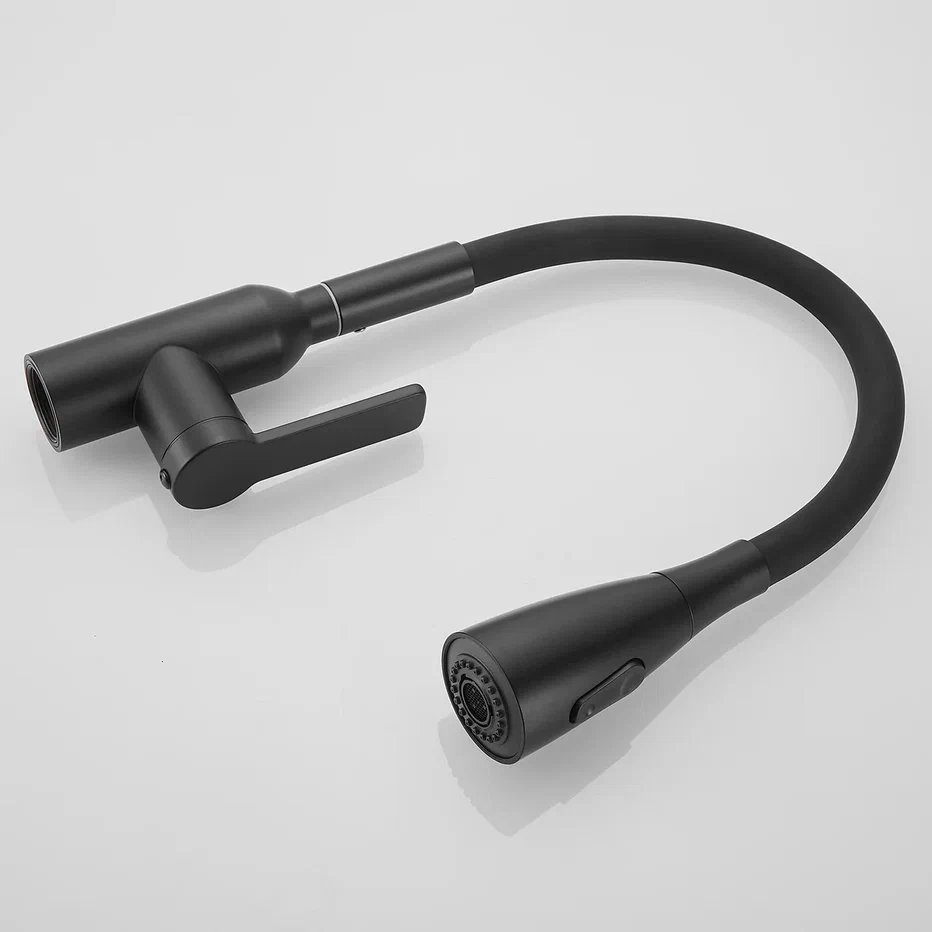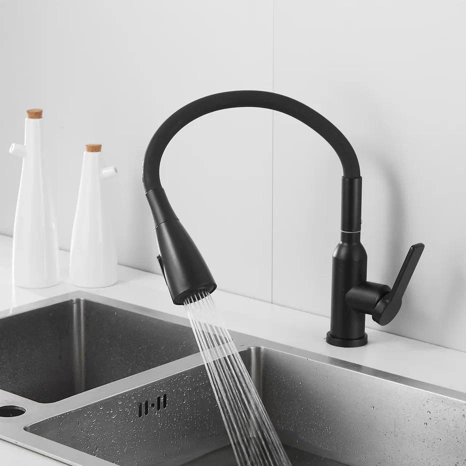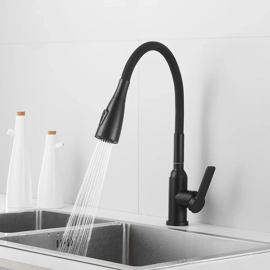 Смеситель для кухни с гибким изливом Shevanik S843H-3, черный. Управление: рычажное. Вращение излива: да. Выдвижной излив: нет. Гибкий излив: да. Высота:45.