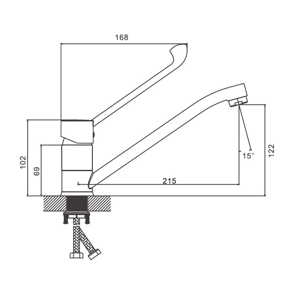смеситель, гибкая подводка, комплект крепления |