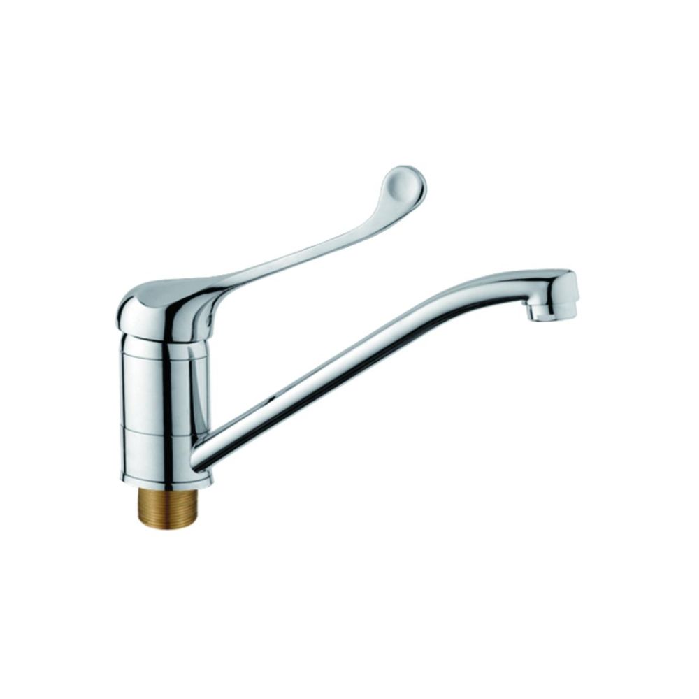 Смеситель для кухни с хирургической ручкой D-Lin D153427, хром. Управление: рычажное. Материал: латунь. Монтаж: на мойку.
