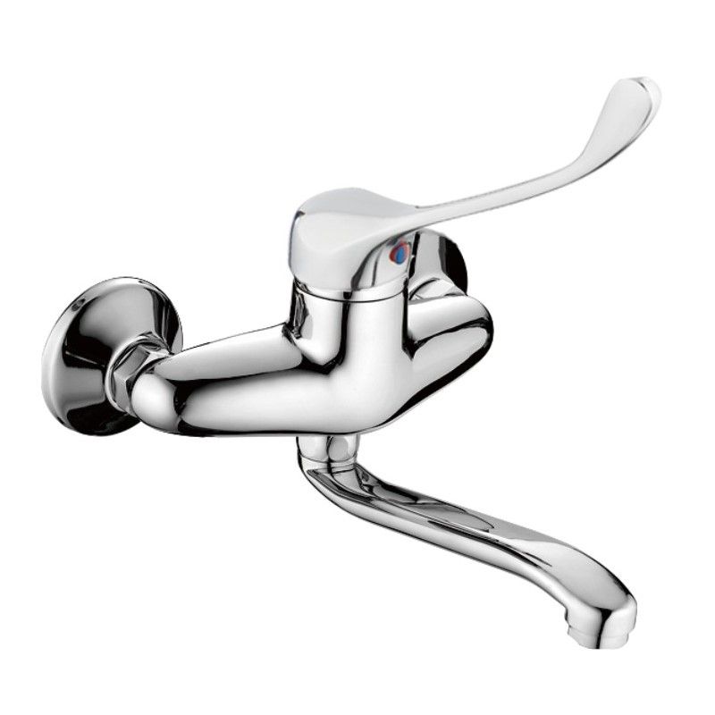 Смеситель для кухни бренда Haiba с хирургической ручкой. Изготовлен из латуни. Картридж 40 мм. Укомплектован аэратором. Гибкая подводка 40 см. С поворотным изливом.