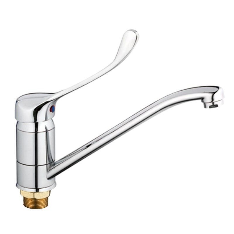 Смеситель для кухни бренда Haiba с хирургической ручкой. Изготовлен из латуни. Картридж 40 мм. Укомплектован аэратором. Гибкая подводка 40 см. С поворотным изливом.