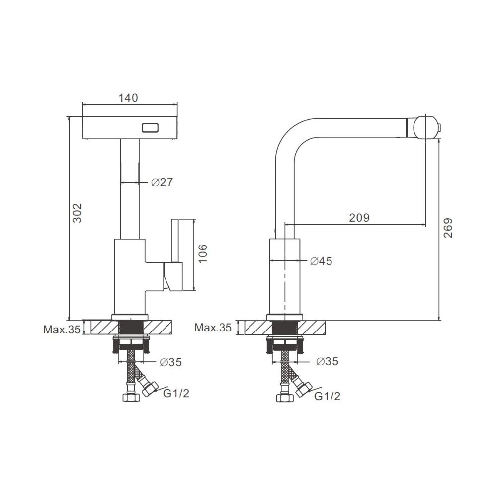 Управление смесителем осуществляется при помощи рычага, а его механизм основан на использовании керамического картриджа диаметром 35 мм. Это обеспечивает плавное и точное регулирование температуры и напора воды, делая использование смесителя максимально комфортным.