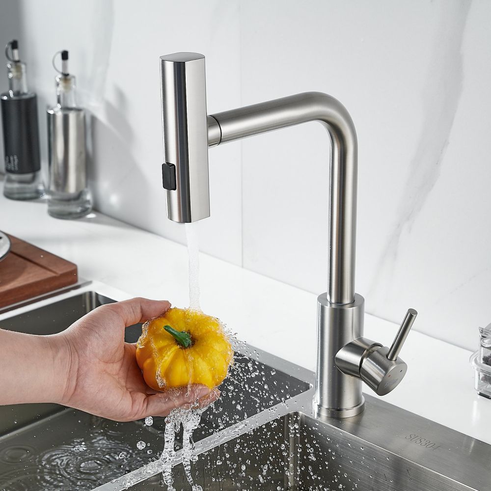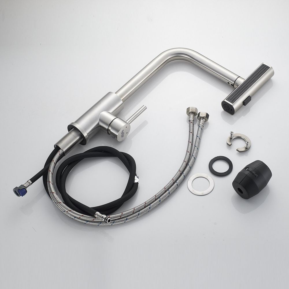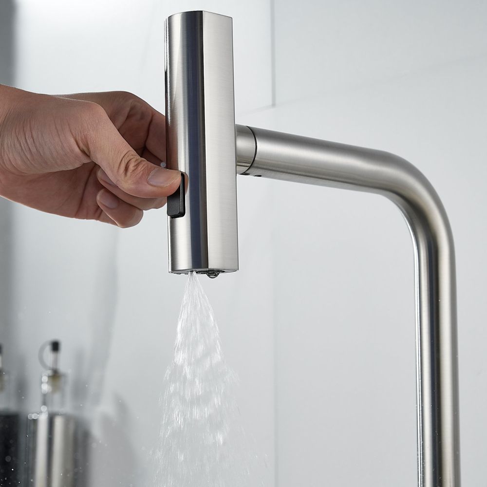 Одним из ключевых преимуществ данного смесителя является съемный выдвижной поворотный излив, который можно легко снять и повернуть в любую сторону. Излив выполнен в том же цвете, что и корпус смесителя, что позволяет ему идеально сочетаться с любым кухонным интерьером.