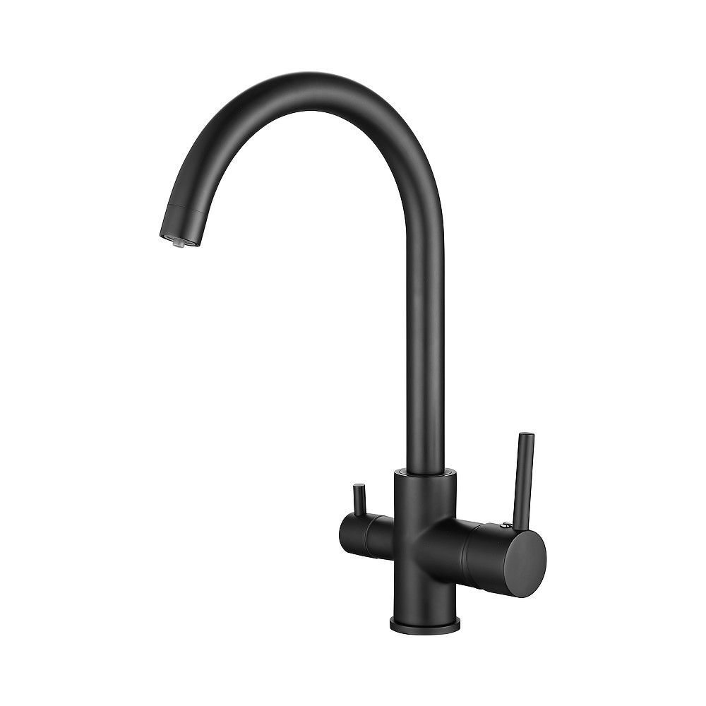 Высокий смеситель для кухни BELZ с подключением фильтра питьевой воды. Керамический картридж 35 мм. Поворотный излив. Съемный аэратор. Гибкая подводка 45 см. Усиленная гайка крепления смесителя.