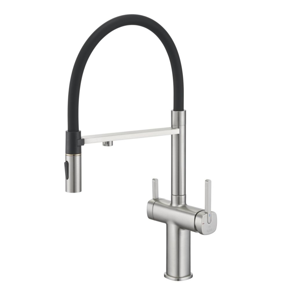 Одним из ключевых преимуществ смесителя Rose является возможность подключения фильтра для воды. Теперь у вас всегда будет доступ к чистой и свежей воде прямо из вашей мойки. Дополнительный излив служит не только для подачи фильтрованной воды, но и как держатель для гибкого излива, когда тот не используется, что добавляет удобства в повседневном использовании.